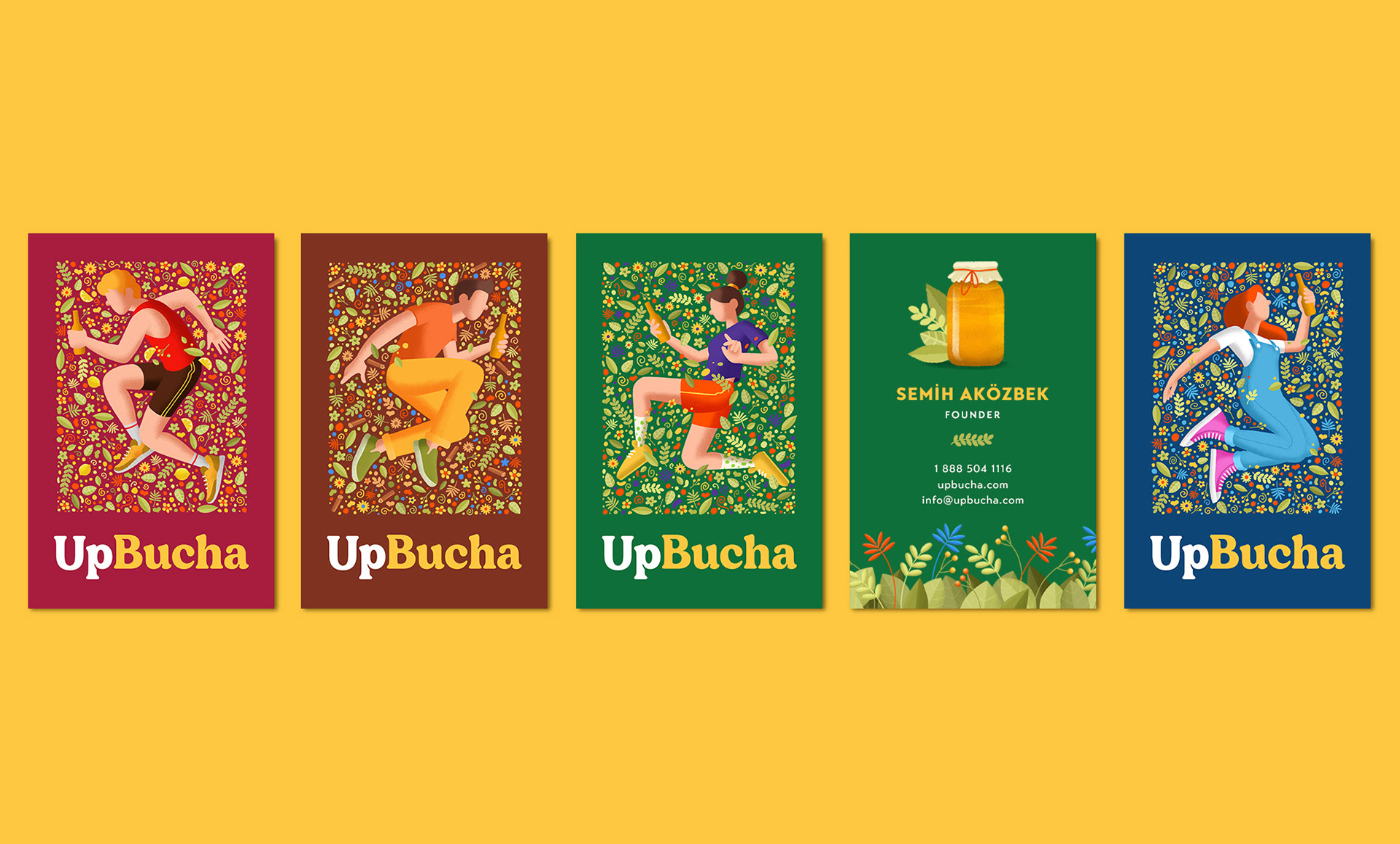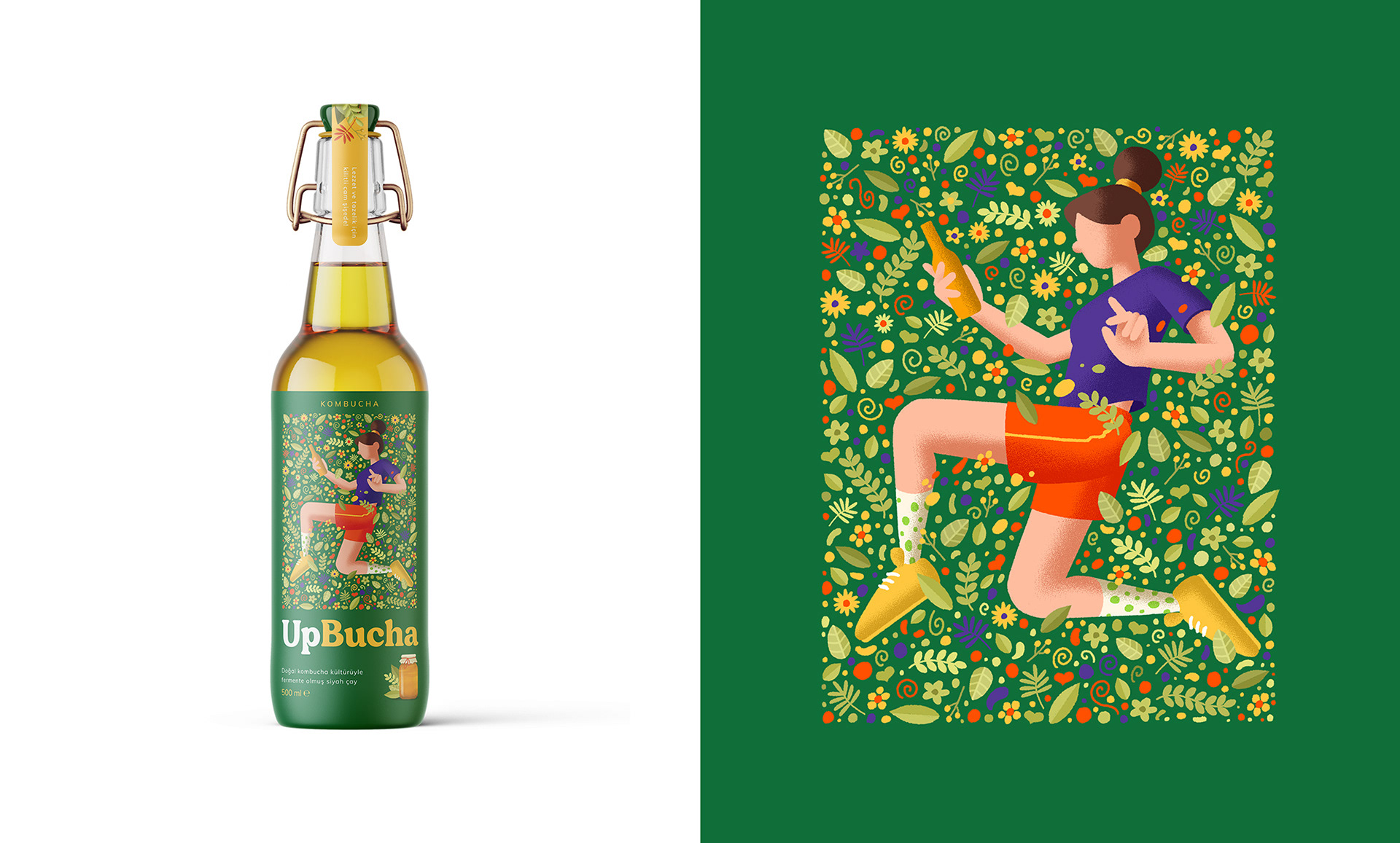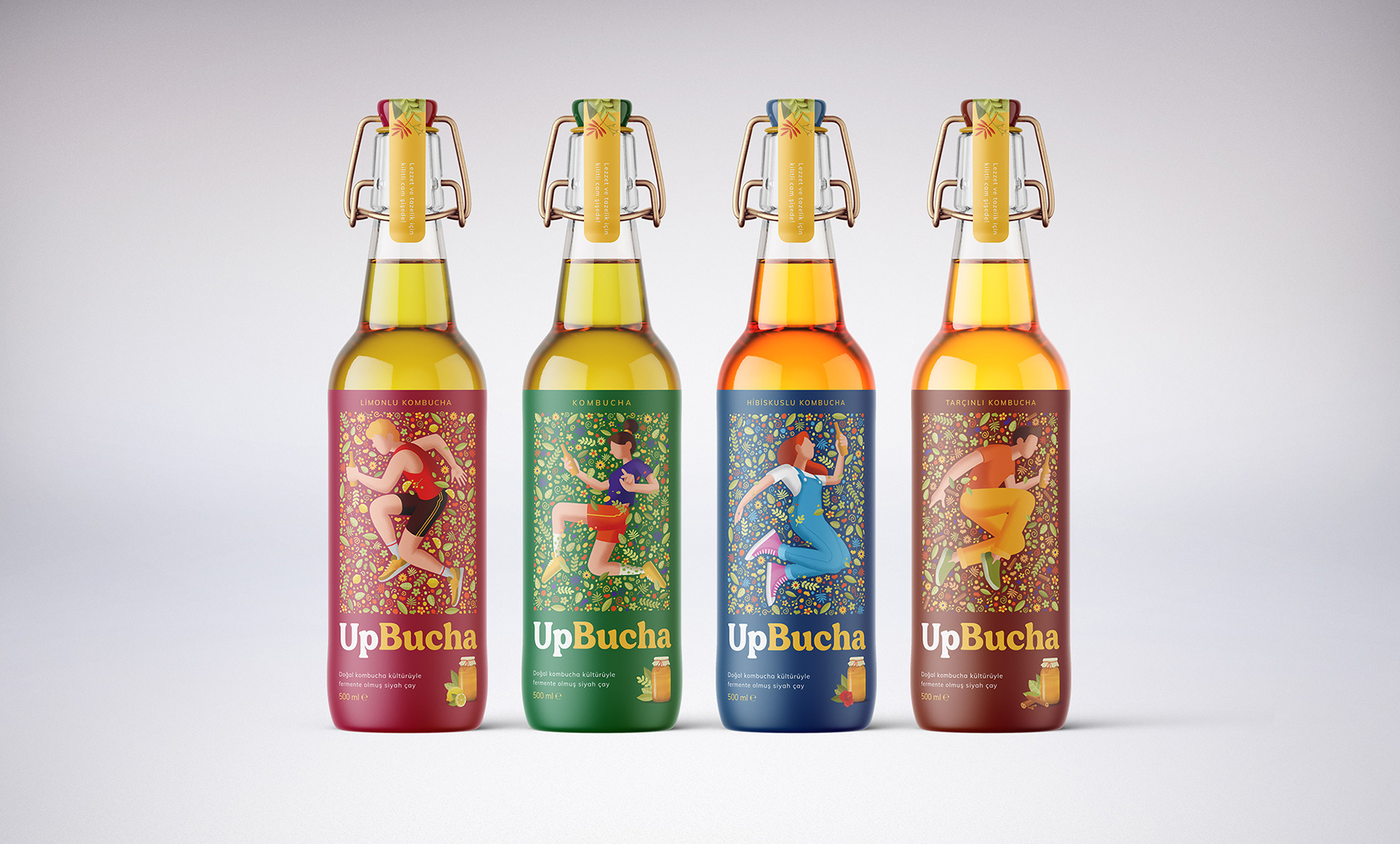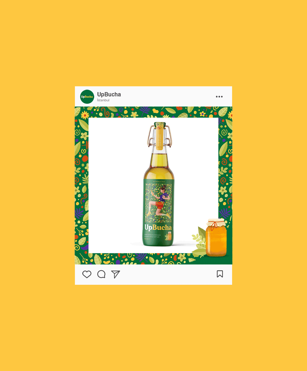 So we designed packages with active and young characters who feel one with nature and themselves when they drink UpBucha.