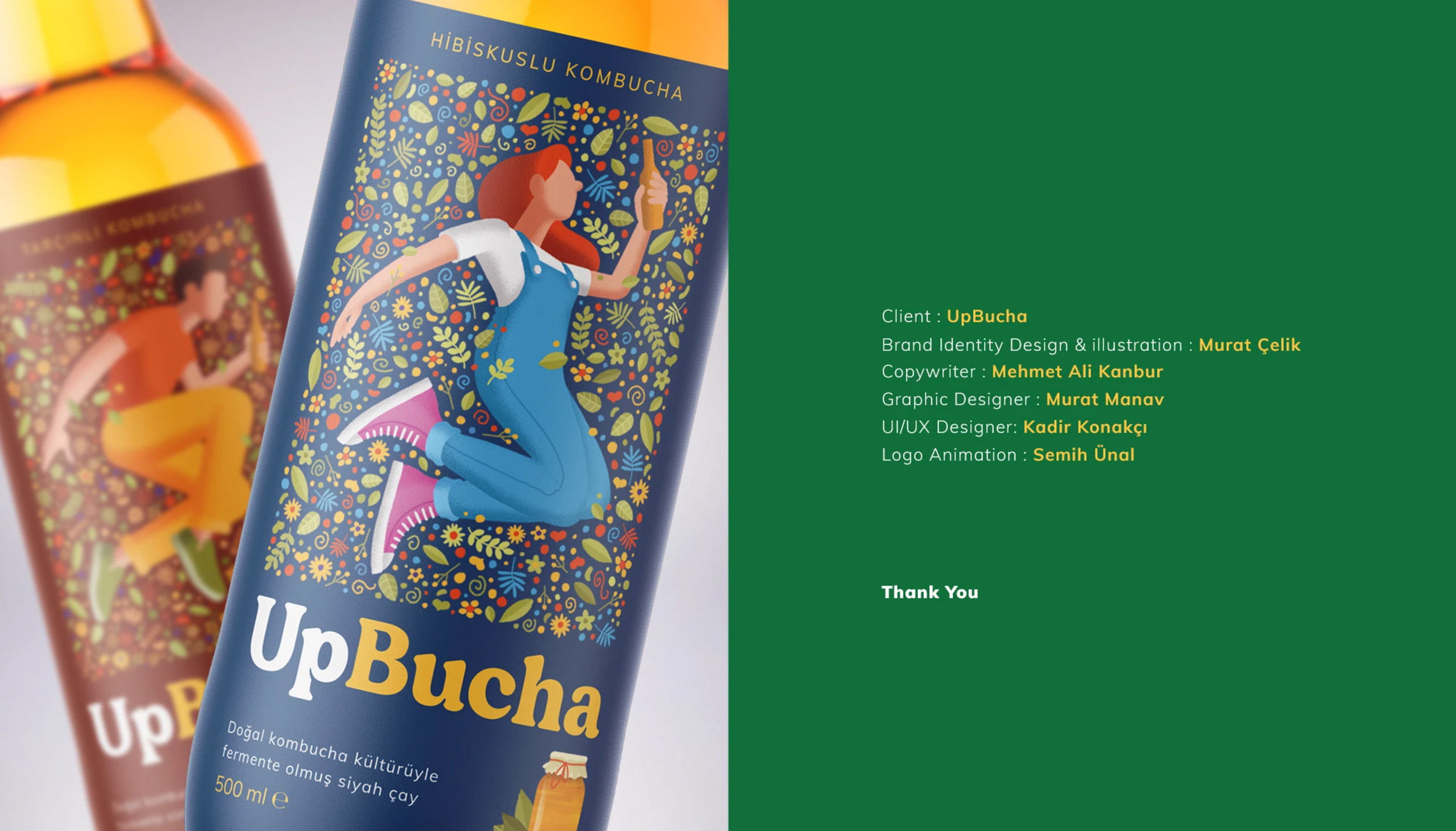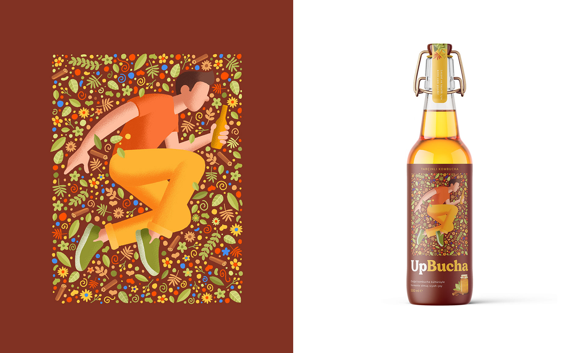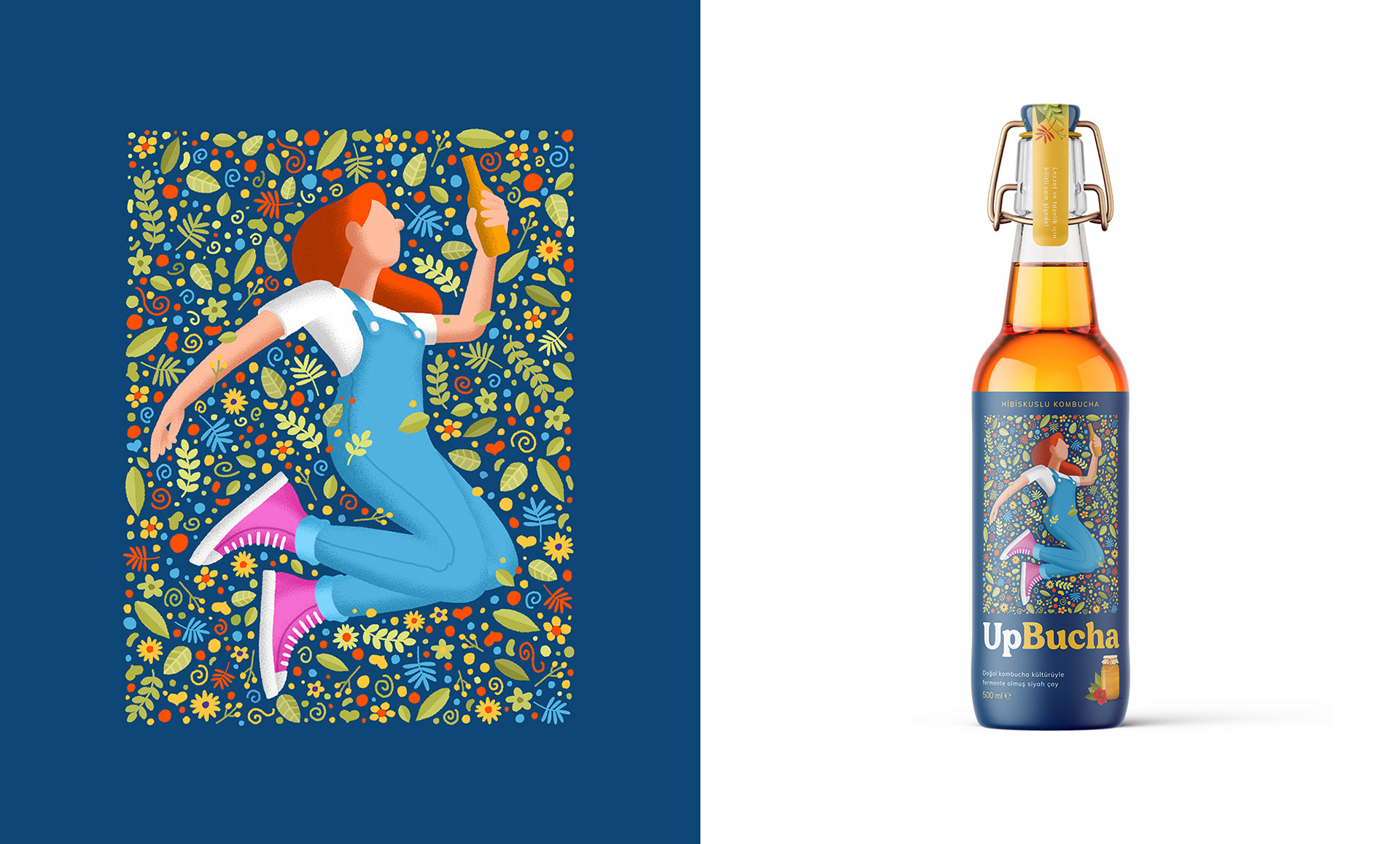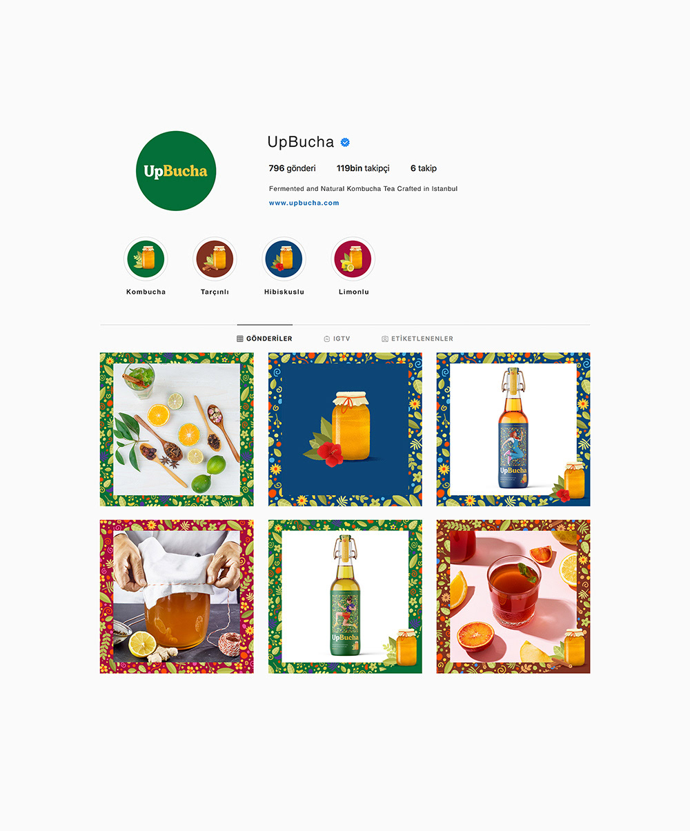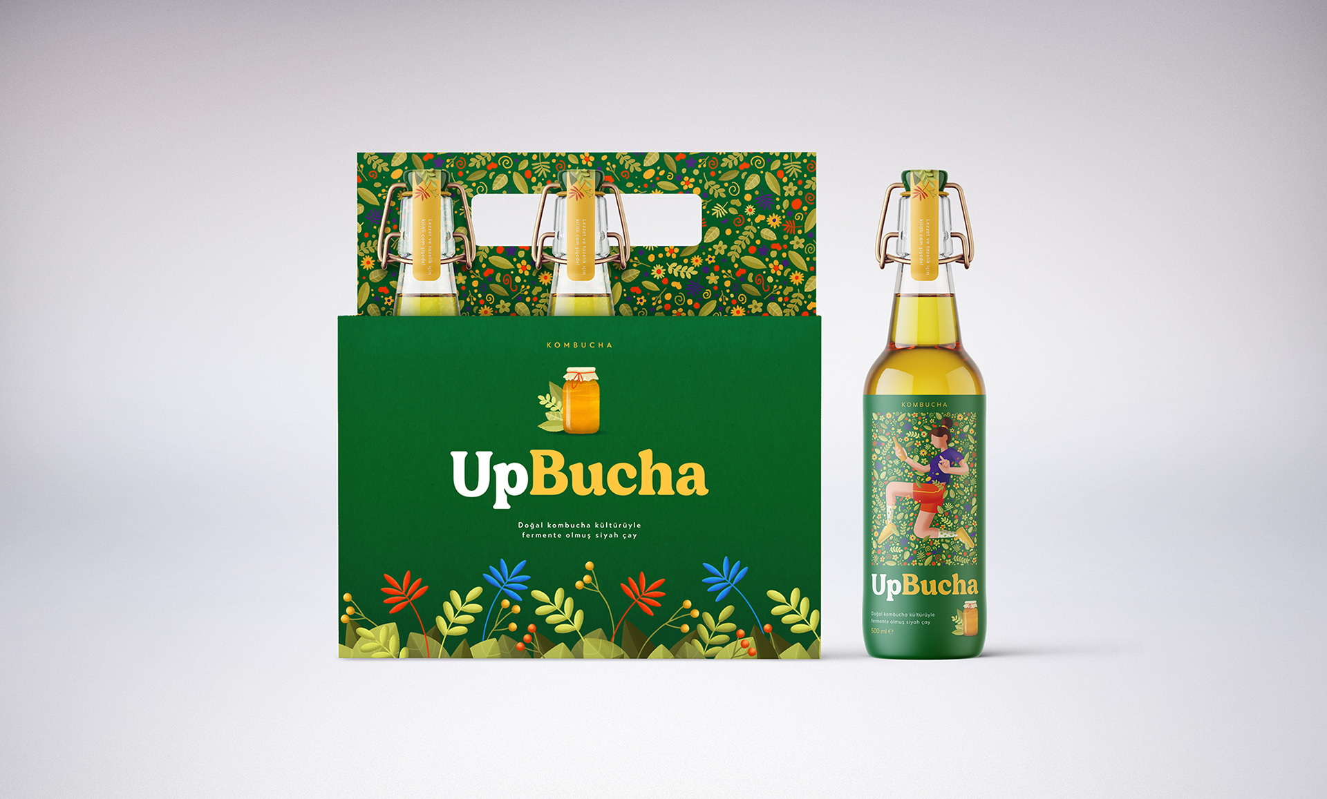 So we designed packages with active and young characters who feel one with nature and themselves when they drink UpBucha.
